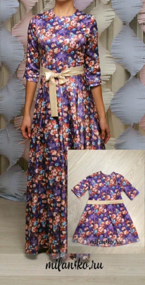 Элегантное платье макси из плотной хлопковой ткани с цветочным принтом "Василиса" - первое платье из зимней коллекции 2015-2016 "Зимняя сказка". Платье имеет красивый округлый вырез, рукава 3/4 на манжетах, талия почеркнута поясом из атласной ткани в тон платью, а юбка изящно струится по фигуре.