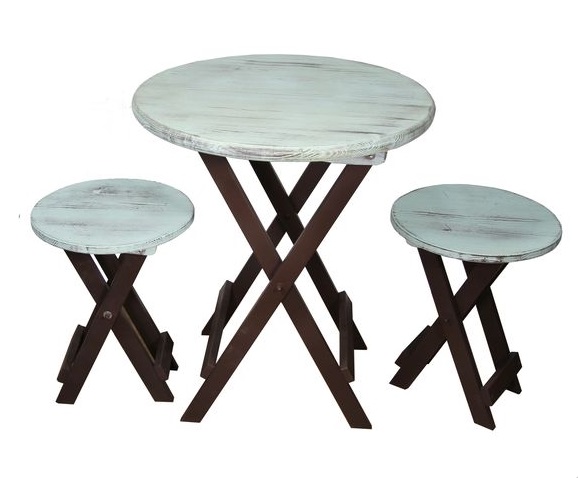 Материал: массив сосны Размер столика Н-70 см, D-60 см, размер табуретки H-44 см, D-34 см