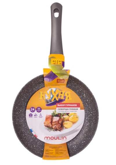 Сковорода глубокая с антипригарным покрытием "КУХНЯ", съемная ручка, индукция, 24 см - 556 р - 1 шт